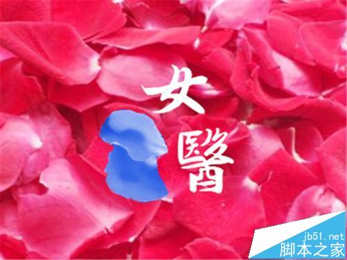 5、打开“输入文字”按钮,一个一个写字,在这里,先写“女”字,插入图片中,然后再写“医”字,然后再插入图片中,调整好位置。这里就用到了刚才下载并安装上的书法字体了,可以写出非常漂亮的字体。