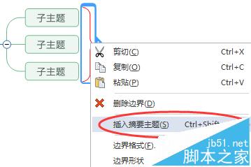 2、若要对大括号作总结性说明,则右击大括号,点击插入摘要主题,出现文本框,输入总结内容即可。