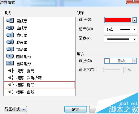 3、若要对大括号进行格式化,只需右击大括号,点击边界格式,在边界格式对话框中修改大括号的样式、线条、填充等。