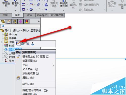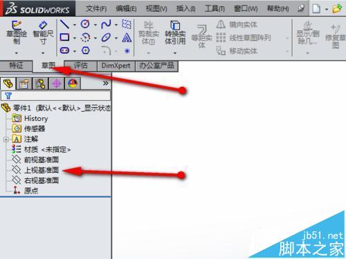 1、打开软件,单击“草图”,右键选择“上视图基准面”。