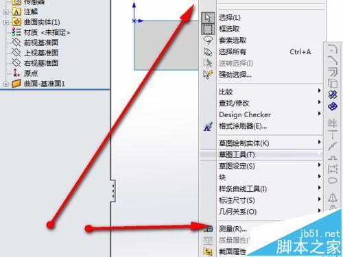 2、点击“工具”——“测量”。会弹出一个对话框,选择那个平面,在对话框里就可以看到测量的面积了。
