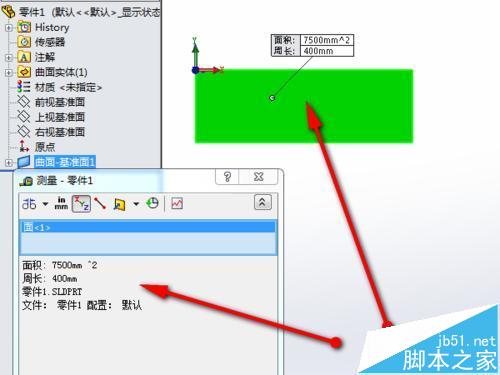 将创建的草图拉伸为一个实体,然后点击测量工具,当我们选中两个面的时候我们还可以测量这两个面的面积之和。
