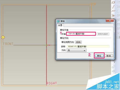 4、再弹出的床口点击草绘平面,然后选择草绘平面,最后点击草绘。