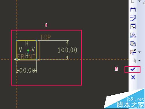 5、在草绘界面绘制需要拉伸的截面,并定义各尺寸,绘制完成后点击勾。