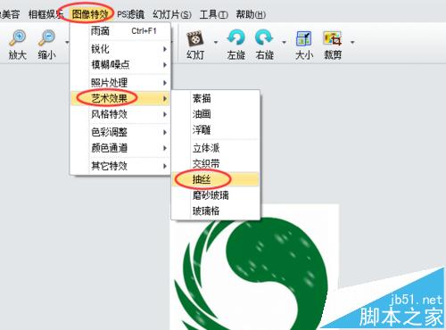 5、再来设置一下艺术效果。单击图片特效---艺术效果,选择抽丝。