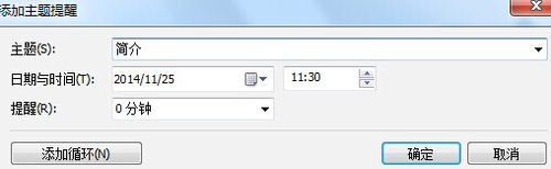 3、在打开的添加主题提醒对话框内输入信息,点击确定。