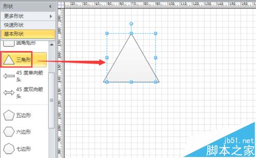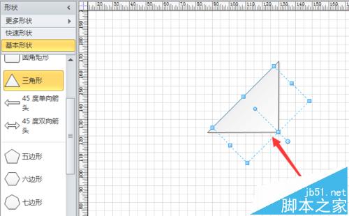 2、接着,从左侧形状栏中拖入一个“三角形”形状,并调整其为直角三角形,如图所示。