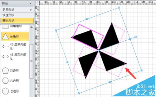 4、复制粘贴这个三角形,将其摆置成如图所示的样式,成风车状。