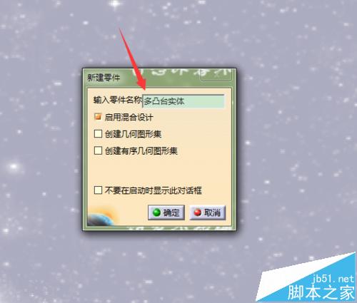 2、新建一个PART文件,命名为多凸台实体;
