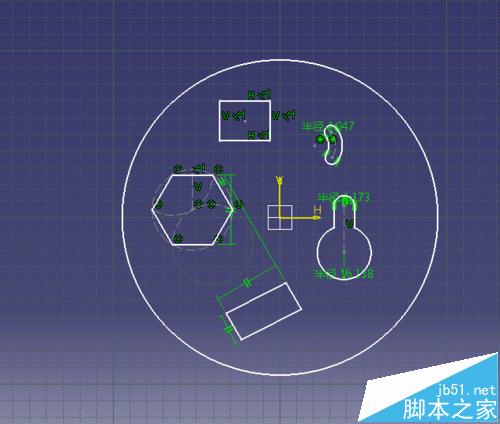 4、在草图上绘制几个圆形和多边形,确保图形不要相交;退出工作台;