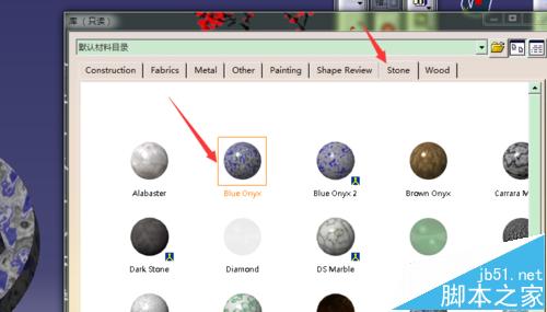 6、为其添加一个材质,按照图示箭头选择材质,也可自行选择。得到带材质的效果的实体。