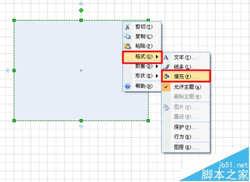 2、点击选中方框图形,然后点击鼠标右键,在下拉菜单中,依次选择“格式”-“填充”,如下图所示: