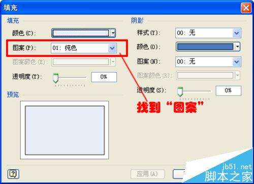 3、在弹出的“填充”设置框中找到“图案”,如下图所示: