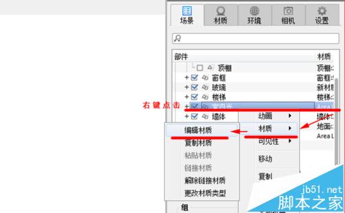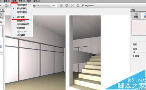 8、开启细化阴影选项,然后在材质上单击右键,编辑材质,设置材质亮度。