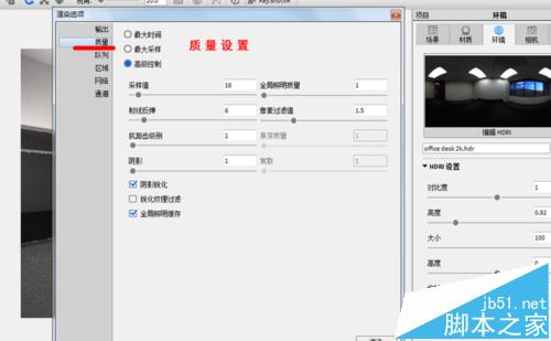 3、渲染设置中全局照明数值越高渲染时间越长。可以为材质指定贴图,因为不是本例的重点,所以在此省略了。