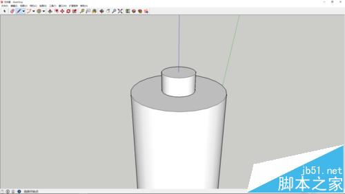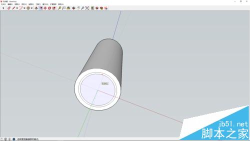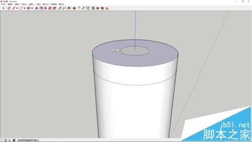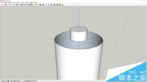 4、使用推拉工具,推拉出如图的图形,如果发现下边圆柱镂空了,就用画线工具补上线。