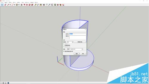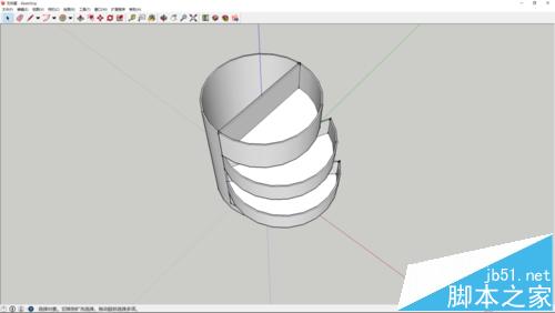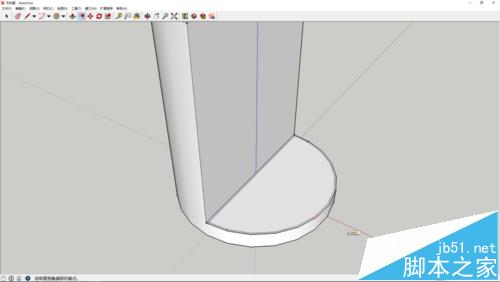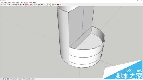 4、之后在另外半边圆绘制一个半圆,同样使用偏移工具偏移出壁厚,再推拉出高度。然后创建组件。
