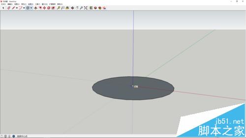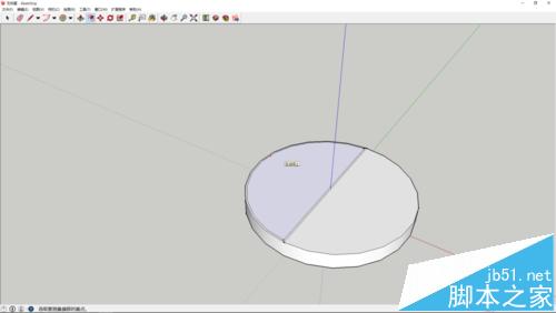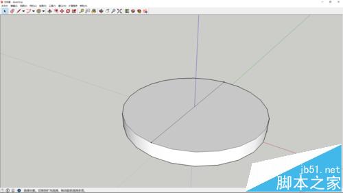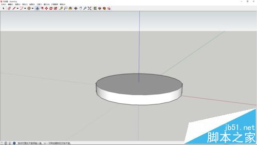 1、使用圆形工具绘制一个圆平面,使用推拉工具推出高度。