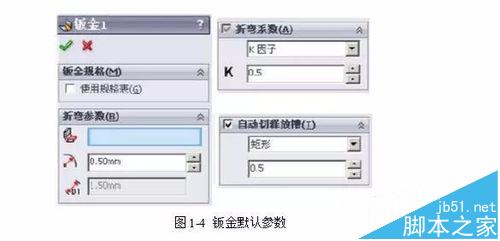折弯系数是用于计算钣金展开的折弯算法,SolidWorks中支持常用的“K-因子”、“折弯扣除”、“折弯系数表”和“折弯补偿”等方法。在“钣金”特征中定义默认的折弯系数。