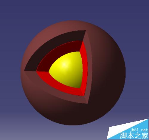 7、添加颜色,隐藏平面,得到球体剖面实体。