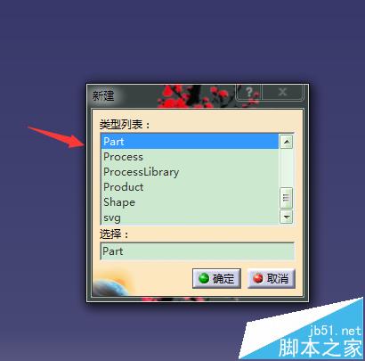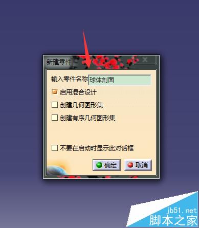 1、双击打开CATIA软件,新建一个PART文件,命名为球体剖面;