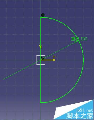 2、选择YZ平面,进入草图,绘制一个直径100的半圆。退出草图,进行旋转,添加颜色;