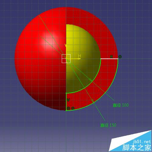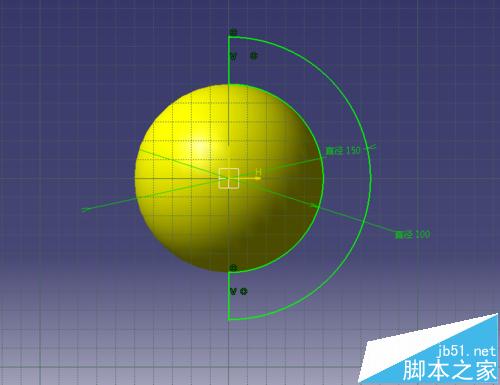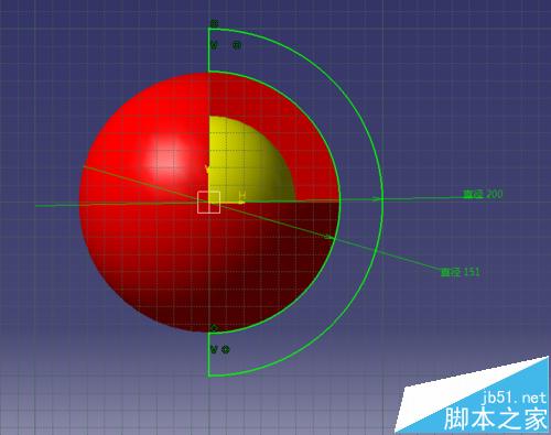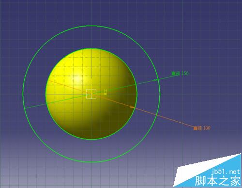 5、同理绘制出最外层的球体,直径151和200的同心圆;想一想为什么不是150和200的圆?