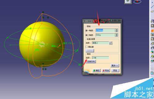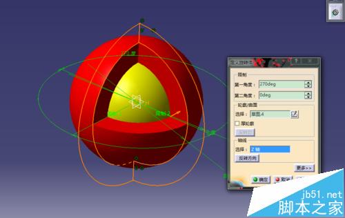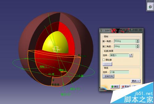 3、选择YZ平面,进入草图,绘制一组同心圆,直径分别人100,和150,然后修剪成图示图形,退出草图,进行旋转,角度为270度,旋转轴为Z轴,然后添加颜色;