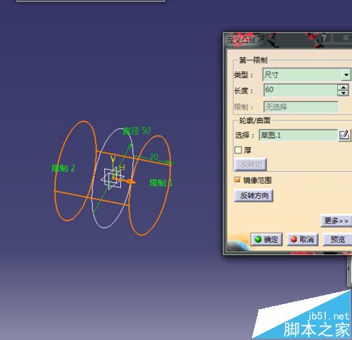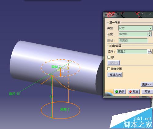 3、退出草图经行拉伸;同理选择XY平面,进入草图,绘制一个直径50的圆;退出草图经行拉伸;