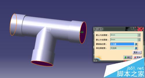 用CATIA软件绘制一个三通,主要用到的命令就是凸台命令,和抽壳。