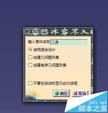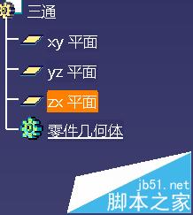 1、打开CATIA软件,新建一个PART文件,命名为三通;