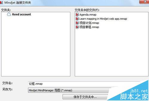 4、将制作好的思维导图保存到Mindjet 文件。点击文件,选择另存为,在弹出的对话框内选择保存到Mindjet 连接。