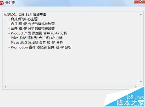 4、选择好后点击合并。将会出现合并提示框,讲述导图合并的具体内容以及位置情况。