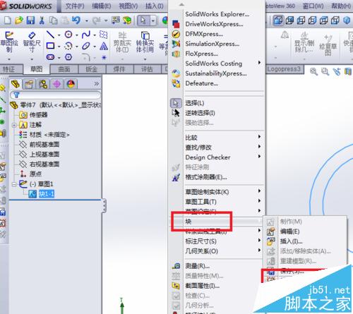 3、插入一个块。(具体方法可参照SolidWorks如何插入块进行操作)