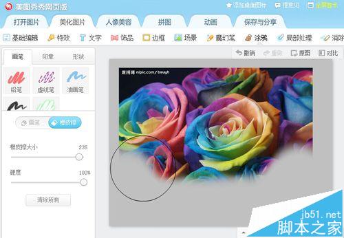 4、擦除花朵周边,保留花朵主体。(硬度:数值越大边缘越柔软)