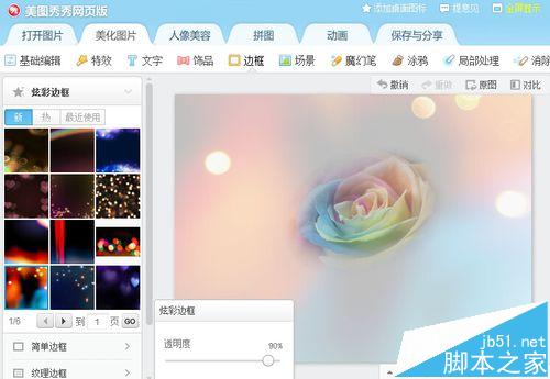 6、转到“边框”,添加一个炫彩边框,然后再到“特效”,加一个夜景特效。大功告成。