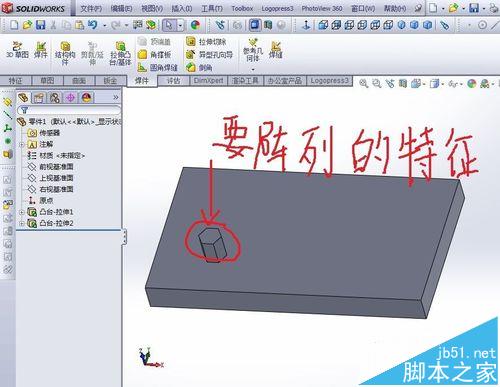 3、绘制任意一个特征作为基体,并绘制要阵列的特征。