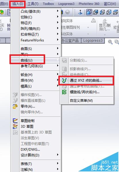 3、单击“插入”菜单中的“曲线”,在其子菜单下单击“通过XYZ点的曲线”