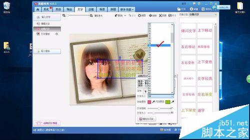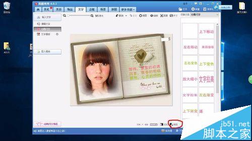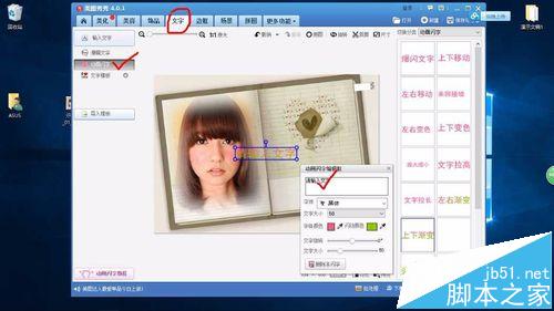 5、接下来,单击文字按钮,并选择动画闪字,如下图所示: