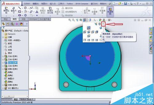 4、点击前导视图中的“视图定向”,在弹出的下拉菜单中点击“更多选项”,如下图所示: