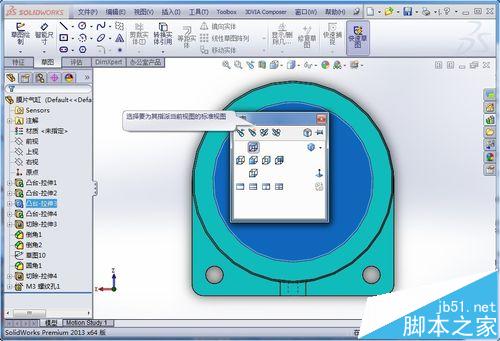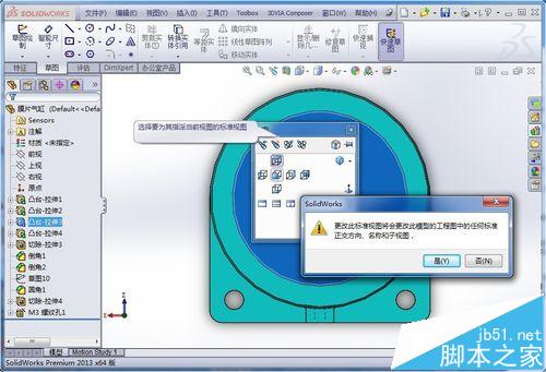 6、选择一个视图,如“前视图”,点击相关图标后就把前视图更新为当前模型视图了。更新前视图后,其相关的其他视图的相应得到更新,点击提示对话框中的“是”即可,如下图所示: