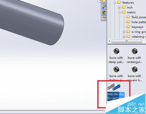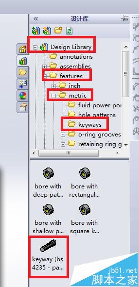 2、在设计库中,按照下图提示,找到Keyways文件夹,并找到该文件夹下的keyway(bs 4235-part)。