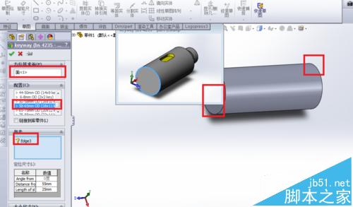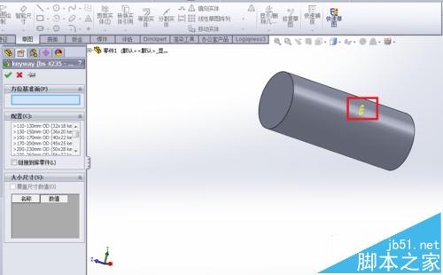 3、按住keyway(bs 4235-part)并拖动到基体特征上。