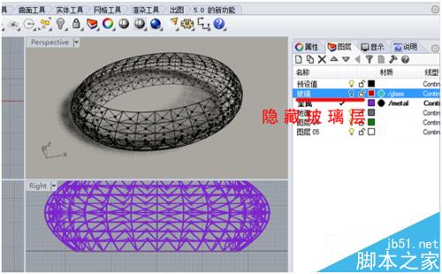 3、下边我们将桁架部分制作成替代物体,首先将玻璃层隐藏。