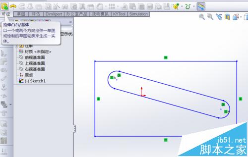 4、在特征树中点中这个草图。并再次选取一个特征进行操作。这里我们仍然选择拉伸操作。