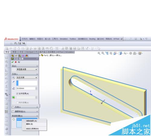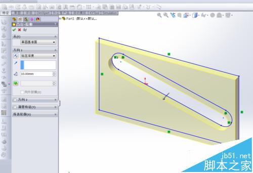 2、对这个草图进行第一次特征操作,这里我们选取拉伸操作。设置好拉伸的各种参数。(这里设置拉伸高度为10mm),点击确定。