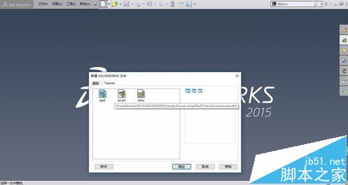 1、双击或者右键打开solidworks2015软件,其他版本的solidworks都可以使用该方法,新建一个零件文件,点击确定。