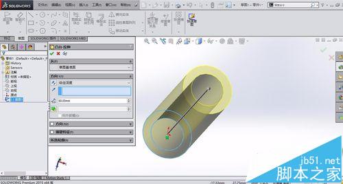 2、我们先绘制一个圆筒:选择拉伸凸台命令,然后绘制一个外径大小为30mm的圆,内径为20mm的圆,然后进行拉伸,拉伸高度可设置为80mm,点击打勾。