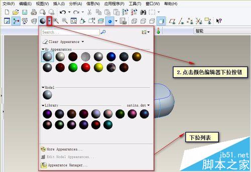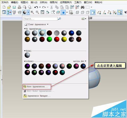 2、进入颜色编辑器,最下方有3个选择按钮(more appearance 更多的外观;、model appearance 模型外观编辑;appearance manager 外观管理 ),我们一般选用第一个进行编辑