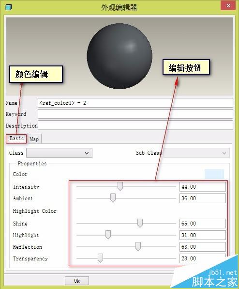 3、退出编辑界面,点击颜色编辑按钮,会弹出一个对话框,然后按住ctrt键选中零件所有画面,单击确定